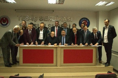 TES-İŞ Başkanı Nakif Yılmaz, TES-İS’e bağlı 16 sendika başkanları, Büyük Anadolu Hastaneleri Genel Müdürü Güner Armutlu ile Kurumsal İlişkiler ve İş Geliştirme Müdürü Fatih Esen düzenlenen kurumsal sözleşme imza töreninde bir araya geldi.