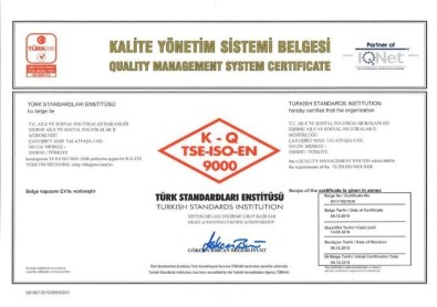 Türk Standartları Enstitüsü tarafından hizmet kalitemiz, TS EN ISO 9001:2008 Kalite Yönetim Sistemi Belgesi ve ayrıca IQNET Sertifikası ile belgelendirilmiştir. Kalite Politikamız gereği tüm hizmetlerimizi İl Müdürlüğü ve bağlı kuruluşlarımızda TS EN ISO 9001:2008 standartları ve IQNET sertifikası kapsamında sürdürmeye devam edeceğiz” denildi.