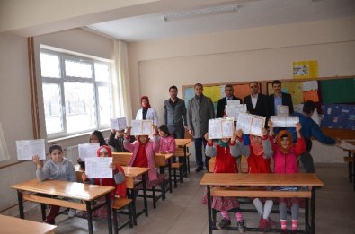 Kaymakam Mehmet Aksu karnelerini alan öğrencilerden, yarıyıl tatillerini en iyi şekilde değerlendirmelerini ve bol bol kitap okumalarını istedi.