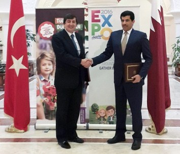 Konuşmaların ardından Katar’ın Ankara Büyükelçisi Al-Shafi ve EXPO 2016 Antalya Ajansı Genel Komiseri Büyükelçi Kök arasında Katar’ın EXPO 2016 Antalya’ya katılım anlaşması imzalandı. Daha sonra ise Kök, Al-Shafi’ye hediye takdim etti. İkili görüşmenin sonunda günün anısına ayrıca fotoğraf da çektirildi.