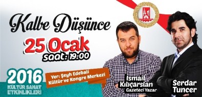 Bilecik Belediyesi 2016 Kültür ve Sanat etkinlikleri kapsamında, Şair Yazar ve Televizyon Programcısı Serdar Tuncer’in sunduğu ’’Kalbe Düşünce’’ adlı programda, Gazeteci Yazar İsmail Kılıçarslan, Bileciklilerle bir araya gelecek.