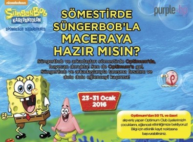 Sünger Bob ve arkadaşlarıyla tanışma fırsatı bulacak. Optimum’a gelen şanslı minikleri