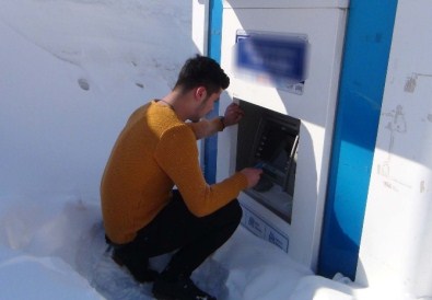 Bitlis’te kar kalınlığı nedeniyle birçok mahalle ve anayol adeta tünel haline gelirken, karla kapanan ATM’nin önünden para çekmeye çalışan vatandaşlar ilginç görüntü oluşturdu.