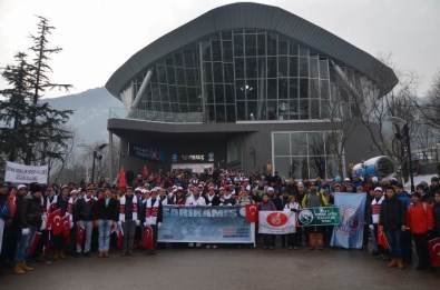 Bursa’da yenı yılda yağan karla beraber beyazlara bürünen Uludağ’da yapılan yürüyüşe katılan vatandaşlar, Sarıkamış şehitlerini andı.