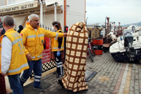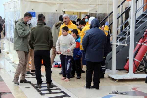 Küçükkuyu rıhtımına getirilen 43 yabancı uyruklu, ambulanslarla Edremit Devlet Hastanesine sevk edildi.