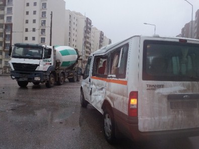 beton mikseri çarptı.Çarpmanın etkisiyle servis minibüsünde bulunan iki öğrenci yaralandı. Kazayı gören çevredeki vatandaşların ihbarı üzerine olay yerine
