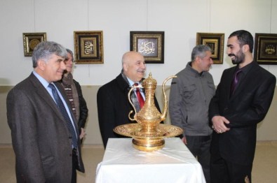 Adıyaman Üniversitesi Fen Edebiyat Fakültesi Matematik Bölümü Araştırma Görevlisi Ebubekir İnan da yaptığı çalışmaların tekniği hakkında bilgi vererek, serginin farklılıklarını anlattı. Arş. Gör. İnan, “Yaklaşık 12-13 yıldır hüsn-i hat çalışıyorum. İsmail ustamla birlikte tombak eserlerle bu sergi Türkiye’de ilk kez Adıyaman’da gerçekleşti. Özellikle tombak eserlerin ilk defa sergileniyor olması bizim çok mutluluk vericidir. Benim tekniğim şu anki buradaki eserler bakır işleme kakma tekniğini kullandım. Özellikle de hüsn-i hat hattat hocalarından izin aldığımız hatları yaptık. Yaklaşık 33 tane eserim var sergide. Gelen herkese, destek olan başta üniversitemiz rektörü Prof. Dr. Mustafa Talha Gönüllü olmak üzere herkese teşekkür ederim” diye konuştu.