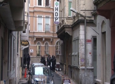 HDP Beyoğlu İlçe Başkanlığı çevresinde yaşanabilecek bir olumsuzluğa karşın geniş güvenlik önlemi alınırken aramaların sürdüğü öğrenildi.
