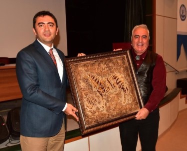 Sertifika dağıtım töreni sonunda Ahlat Kaymakamı Bülent Tekbıyıkoğlu kamu personellerine eğitim veren Dr. Mahmut Naci Çuhacı’ya teşekkür ederek, Ahlat Aile Destek Merkezi (ADEM) kursiyerleri tarafından Tut-Kara tekniği ile yapılan tablo hediye etti.