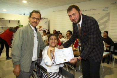 Bir yılın ardından TÜGVA Samsun il Temsilciliği’nde gerçekleşen törende, hayata sevgiyle tutunan 20 down sendromlu öğrenci, sertifikalarını İl Temsilcisi Hakan Durmuşoğlu’nun elinden aldı.