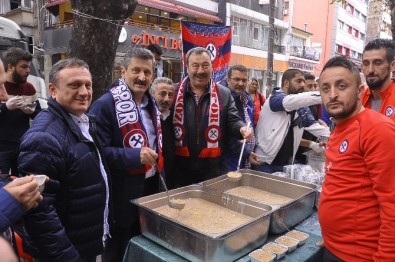 Spor Toto 2.Lig Beyaz Grup’ta mücadele eden Zonguldak Kömürspor Başkanı Süleyman Caner, AK Parti İl Başkanı Zeki Tosun, İl Emniyet Müdürü Osman Ak ve taraftarlar vatandaşlara aşure dağıttı.