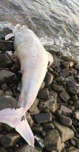 Tekirdağ’ın Şarköy ilçesine bağlı Uçmakdere mevkiinde sahilde, bir vatandaş sabah saatlerinde yaklaşık 2 metre uzunluğunda yunus buldu. Kıyıya vuran ölü yunusu bulan Ahmet Sarıyel çok üzüldüğünü ifade ederek yunusta 3 adet mermi izi olduğunu söyledi.