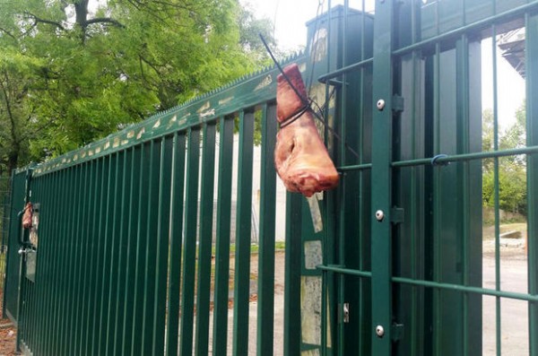 Almanya'da caminin önüne domuz kafası bırakıldı