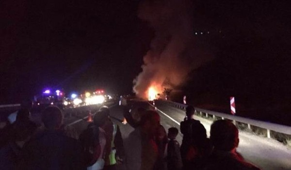 Edinilen bilgilere göre; Ankara-Eskişehir Karayolu üzerinde Balıkesir'den Ankara istikametine doğru seyreden Mustafa Ç. idaresindeki 16 KN 139 plakalı şehirlerarası yolcu otobüsünün motoru, henüz belirlenemeyen bir sebepten dolayı alev aldı. Alevler kısa sürede tüm otobüsü sardı.
