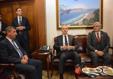 Vali Yılmaz, Başbakan Yardımcısı Kurtulmuş’un basın mensuplarına yaptığı açıklama sonrası Kurtulmuş’a ziyareti anısına Teke yöresi halk çalgısı olan cura hediye etti.