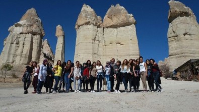Nevşehir Hacı Bektaş Veli Üniversitesi Gülşehir Meslek Yüksek Okulunda öğrenim gören kız öğrenciler Aşk Vadisinde yürüyüş düzenledi.