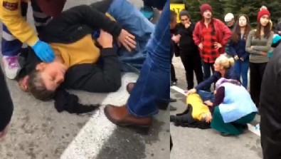 Otomobilin kapısını açan M.K., kendini yola attı. E.K., aracı durdurarak eşinin yanına giderken, yaralanan kadına ilk müdahaleyi yoldan geçen kadın doktor yaptı. Cep telefonu kamerasıyla görüntülenen ilk müdahale sırasında doktor ile konuşan E.K.'nin, 'Ben hiçbir şey olmadığına inanıyorum.
