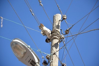Şanlıurfa’nın Siverek ilçesine 55 kilometre uzaklıkta bulunan Karabahçe Mahallesi’ne giden itfaiye ekipleri, elektrik direğine çıkan kediyi kurtardı.