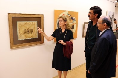 Konuşmaların ardından açılışı yapılan karma sergide, Doç. Dr. İsa Eliri, Yrd. Doç. Dr. Ahmet Türe, Yrd. Doç. Dr. Fatma Nurcan Sert, Yrd. Doç. Dr. Ömer Tayfur Öztürk, Araştırma Görevlisi Mehmet Susuz, Oğuz Kaleli, Ayşegül Sutekin, Dilan Duymaz, Feyza Soydan, Nurhan Çamöz Açıkbaş ve Turan Vardar’ın eserleri yer alıyor.