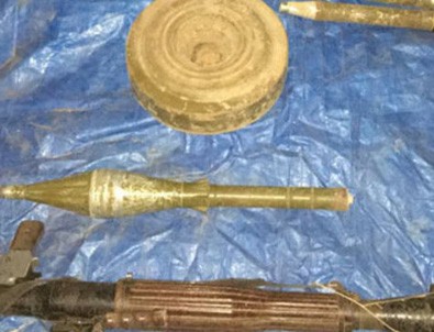 'Sığınakta piyade tüfeği, keskin nişancı tüfeği ve tüfek üzerine monteli dürbün, 26 tabanca mermisi, 299 piyade tüfeği fişeği, 11 piyade tüfeği şarjörü, hücum yeleği, 4 sırt çantası, 175 metre elektrik kablosu, 22 pil, 3 el ile araç telsizi, telsiz konuşma mandalı, 49 keskin nişancı tüfeği fişeği, 5 keskin nişancı tüfeği şarjörü, silah üstü dürbün, 3 el bombası, 9 uzaktan komutalı anahtar devresi, silah üstü termal, 6 zaman ayarlı düzenek, 25 fünye, 3 kilogram patlayıcı olduğu değerlendirilen madde, 11 elektronik devre kartı, 2 dürbün, 5 pil bloğu ve küçük tüp.'