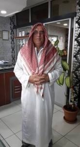 Bursa’nın Karacabey ilçesinin eski belediye başkanlarından Ergün Koç, geçen yıl giydiği Arap şeyhi kıyafetini bu sene de giyerek ilçe sokaklarında boy gösterdi.