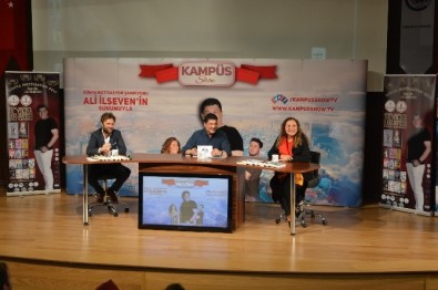 Söyleşi ve röportaj sonrasında Kampüs Show’un çekimlerine geçildi. “Mezuniyet Sonrası İşsizlik” temasının işlendiği programda Doç. Dr. Ali İlseven, Rektör Prof. Dr. Nigar Demircan Çakar ve Selim Gülgören’e önemli sorular yöneltti.