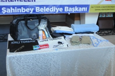 Şahinbey Belediyesi tarafından askere gidecek gençlere 25 çeşit kişisel malzemenin bulunduğu çanta dağıtıldı.