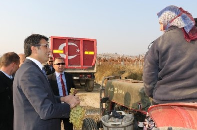 Yoldan geçen çiftçi aile yolda yapılan çalışmalardan dolayı Büyükşehir Belediyesi ve Sarıgöl Belediyesi’ne teşekkür etti. Çiftçi aile incelemelerde bulunan heyete üzüm ikram etti.