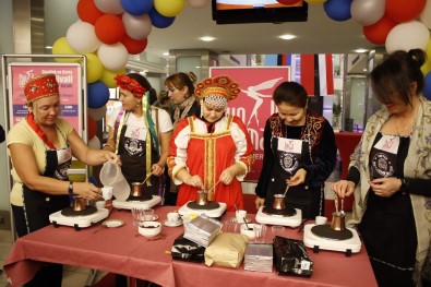 Rus Dostluk ve Kültür Derneği Başkanı Marina Sorokina, Dostluk ve Barış Festivali kapsamında yabancı gelinlerin Türk kahvesi pişirme etkinliğinde bir araya geldiğini kaydetti.