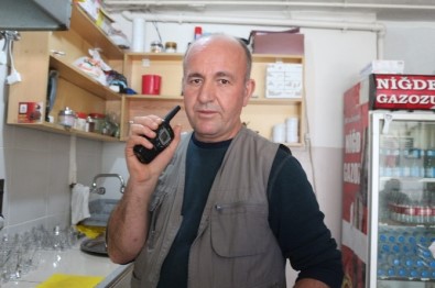 Niğde’de çay ocağı işleten Cevat Aksoylu diafon sistemini bırakarak artık çay siparişlerini telsiz ile alıyor.