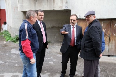 Belediye Meclis Üyesi Hamit Kılıç, Hacınabi Mahallesi Muhtarı Mustafa Cengiz ile birlikte inceleyen