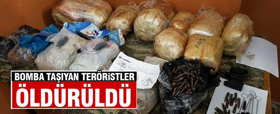 Teröristlerin üzerinden çok sayıda kaleşnikof mermisi, 2 adet tabanca, 80 kilogram patlayıcı ele geçirildi.