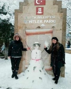 Görmeye alışık olunan kardan adamın tersine Bilecikli kadınlar Şehitler Parkı’na kardan gelin yaparak görenleri hayrete düşürdü. Yaklaşık 1 metre boyunda yaptıkları kardan gelinin boynuna pembe kurdela ve kafasına çam ağacı dallarından taç yapan kadınlar, yaptıkları kardan gelinle birlikte fotoğraf çekilmeyi de ihmal etmedi.