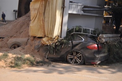 Duvarın Altında Kalan 600 Bin Liralık Porsche Hurdaya Döndü