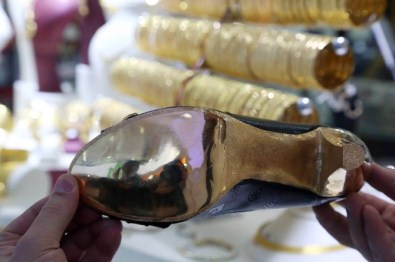Günümüzde altının yatırım aracı olmakla birlikte, takı olarak da kullanıldığını kaydeden Ünal, "Müşterilerimizden farklı siparişler alıyoruz. Sipariş üzerine altın ayakkabı çalışmamız 25 günlük bir atölye ve ekip çalışmasıyla ortaya çıktı. Ayakkabı üzerinde zümrüt ile siyah beyaz pırlantalar kullanıldı. Şu anki değeriyle teki yaklaşık 23 bin lira" diye konuştu.