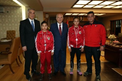 Yenimahalle Belediye Başkanı Fethi Yaşar, Okullararası Türkiye Halter Şampiyonası’nda Türkiye 2’inci olan Dr. Ümit Yaşar Akyol Ortaokulu öğrencileri, 14 yaşındaki Buse Nur Şahin ve 12 yaşındaki Emel Nur Aslan’ı makamında ağırladı.