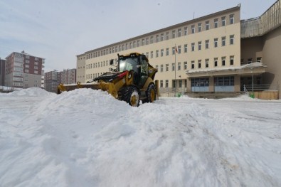 kar temizleme çalışmalarını tamamlarken, okul bahçelerinde de çalışma yaptılar.