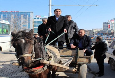 Malatya’da CHP İl Başkanı Enver Kiraz ve yönetim kurulu üyeleri, zorunlu trafik sigortasına yapılan zammı at arabasıyla protesto etti.