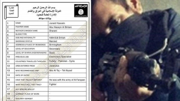 Ele geçirilen listede IŞİD'in militanlara seyahat ettikleri ülkeler, eğitim durumları gibi 23 soru yönelttiği ifade edildi.