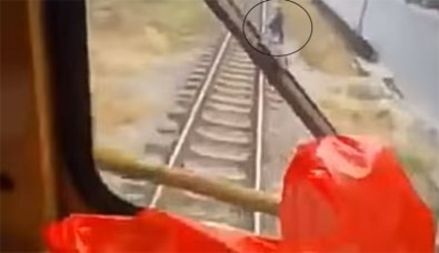 Tayland’da rayların üzerinden karşıya geçmekte olan genç, dalgınlığının bedelini az daha canıyla ödüyordu.