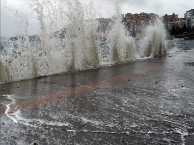Çanakkale Boğazında kuvvetli rüzgar nedeniyle oluşan dalgalar, kıyıları dövdü. Kordon boyunda betona çarparak hemen hemen bir bina boyuna kadar yükselen dalgalar, ilginç görüntüler oluşturdu.