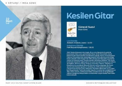Suavi, saat 18.00’da Faik Baysal Kütüphanesi’nde katılımcılar ile buluşacaktır. ‘Kesilen Gitar’ adlı kitabının tanıtımı ve imza töreninin yapılacağı programlara tüm