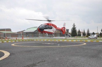 Çerkezköy’de özel bir hastaneye sevk edilmesi kararlaştırılan hasta, Sağlık Bakanlığı’na ait ambulans helikopterle Çerkezköy OSB Müdürlüğü helikopter pistine getirildi.