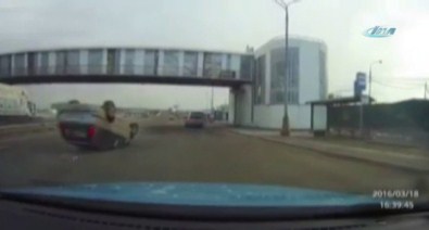 Görüntüler Rusya’dan. Aşırı hız yapan sürücü, dikkatsizce yanındaki kamyonun önüne geçmek istedi. Üstelik şerit ihlali de yapan sürücünün bir anlık dikkatsizliği kazayı da beraberinde getirdi. Otomobil, yan yoldan gelen başka bir araçla çarpıştı. Ardından her iki sürücü bariyere daldı. Feci kazada yaralanan sürücüler hastaneye kaldırıldı.
