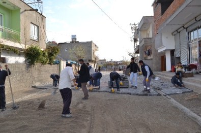 Kahta ilçenin farklı noktalarında kilitli parke taşı döşeme çalışmalarını sürdürüyor.