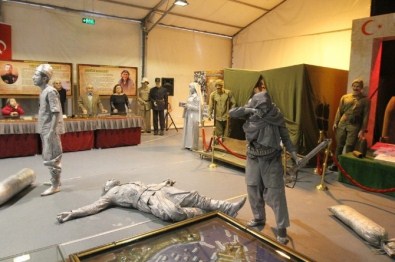 Kartal’da, Çanakkale Savaş Malzemeleri Müzesi’nde canlı mankenler tarafından Seyit Onbaşı, askerler, yaralı askerleri tedavi eden hemşireler ve Anadolu kadınlarının canlandırıldığı gösteri, ziyaretçilere duygu dolu anlar yaşattı.