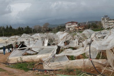 Manavgat’ta etkili olan hortum, sera ve ekili alanlarda büyük çapta zarara yol açtı.