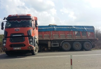 Yan Yatan Tır'ı Kepçe Kurtardı
