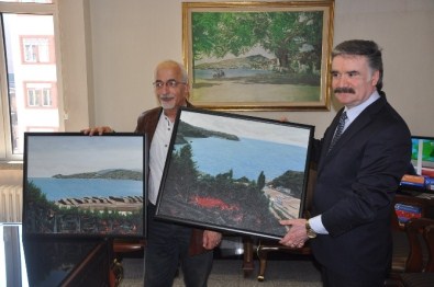 Ressam Ziya Buyuk, kendi yaptığı çalışmalardan 3 adet tabloyu Zonguldak’a getirerek kendi okuduğu okullara hediye edilmesi için Zonguldak Valiliğine teslim etti.