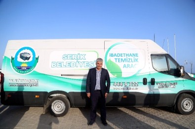 Serik Belediyesi ibadethanelerin daha temiz ve hijyenik olması açısından İbadethane Temizlik Aracı alarak İlçe sınırlarında 66 mahallede 156 cami ve mescitte temizlik yapması için hizmete soktu.